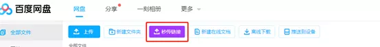 第三部:登录网页版度盘(pan.baidu.com),找到“秒传链接”,点开它。